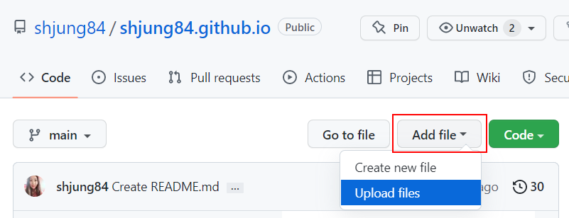 'Add File'을 눌러 위에서 생성한 'dist' 폴더 안의 파일만 업로드 한다.