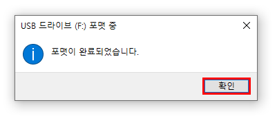 포맷이 완료되면 확인을 눌러 종료.