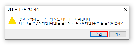 확인을 눌러 포맷 진행