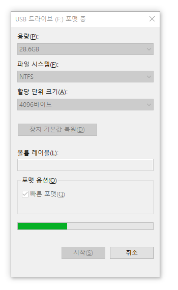 포맷 진행