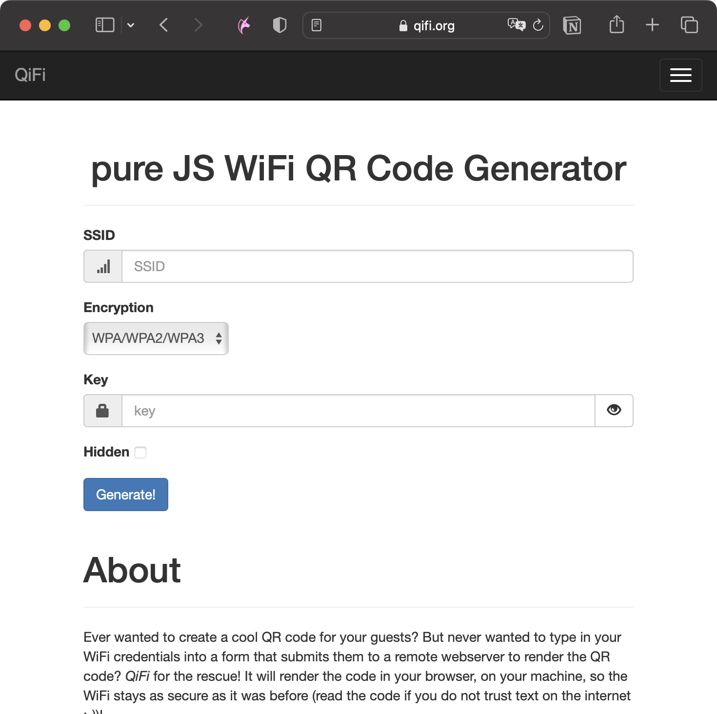 입력하고 "Generate"버튼만 눌러주면 QR코드가 생성된다.