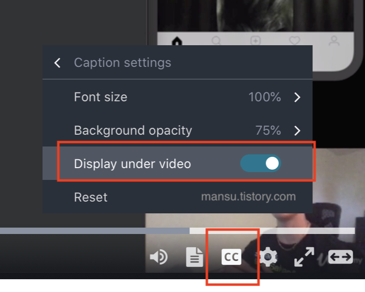 6. "F12" 눌러 개발자 도구 닫기 변경된 자막 확인