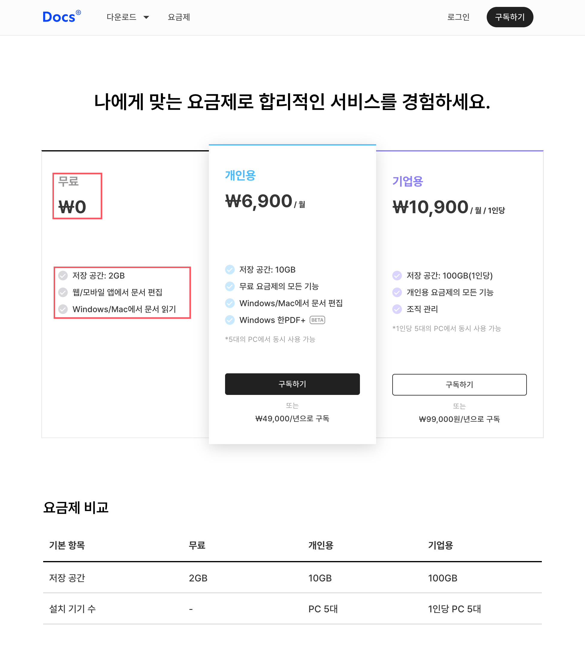 한컴스페이스에서 제공해주는 무료 서비스가 '한컴독스'로 리뉴얼되면서 구독형으로 바뀌었다.