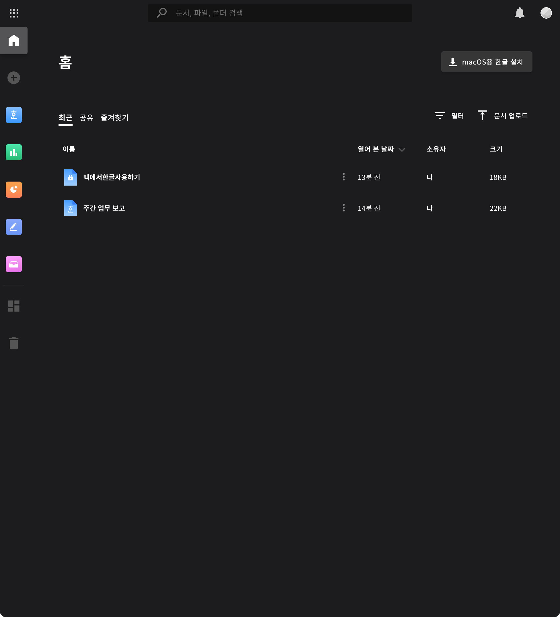 가끔 한글 프로그램을 사용 해야하는데 구매하기는 조금 부담스러울 때 사용하면 너무 좋다!!