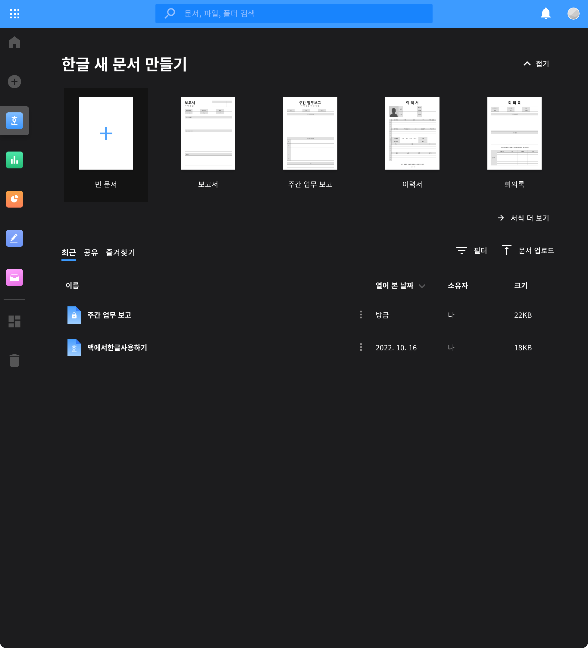 바뀌기전 한컴스페이스에서 저장해논 문서도 그대로 있다..!!