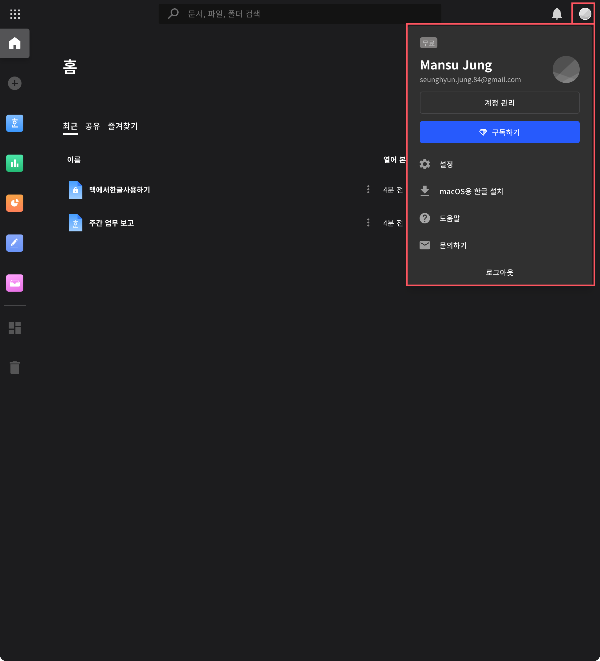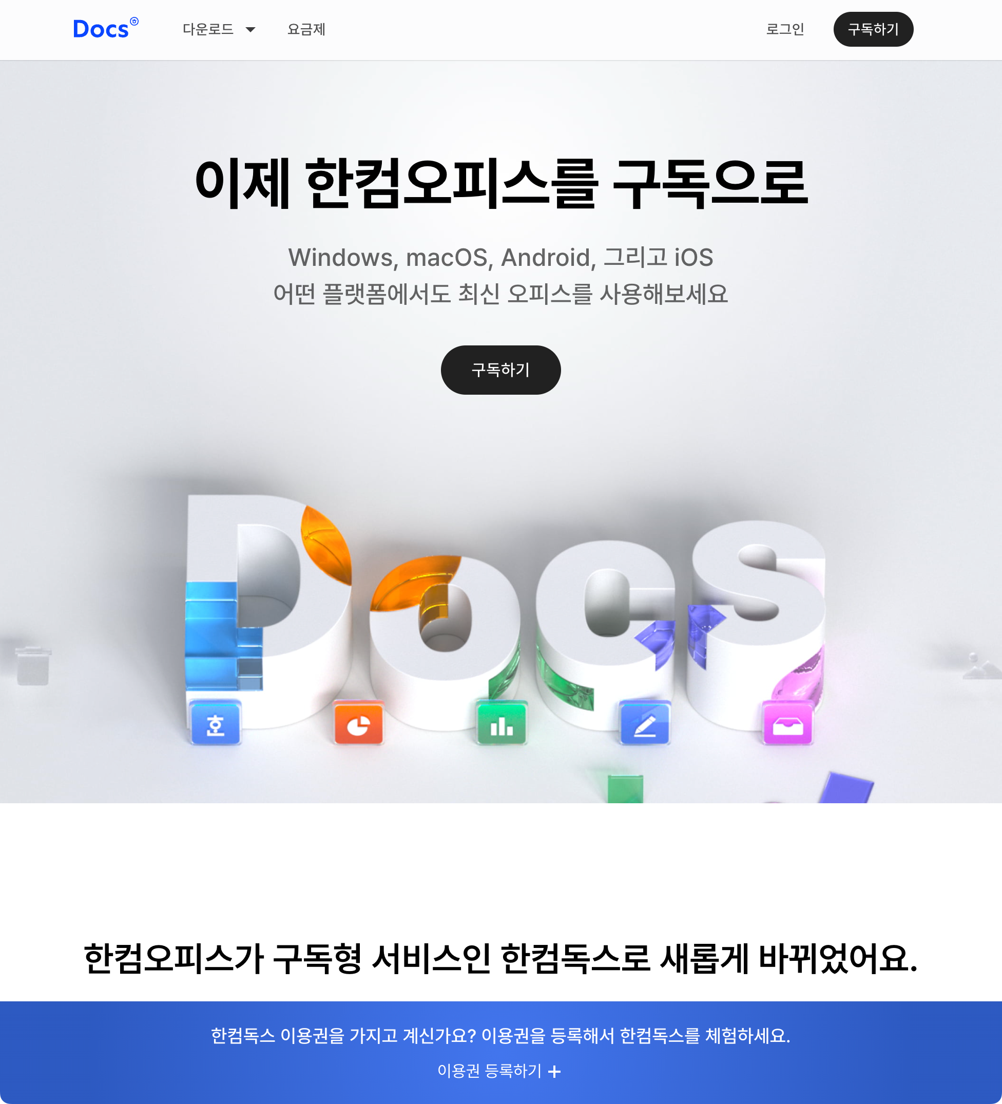 한컴독스 – 한글과컴퓨터의 구독형 한컴오피스