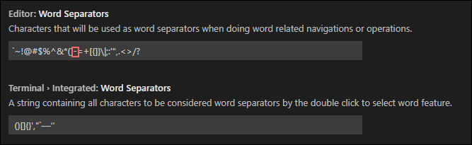 VS Code의 기본 설정은 '-'는 선택이 되지 않는다.