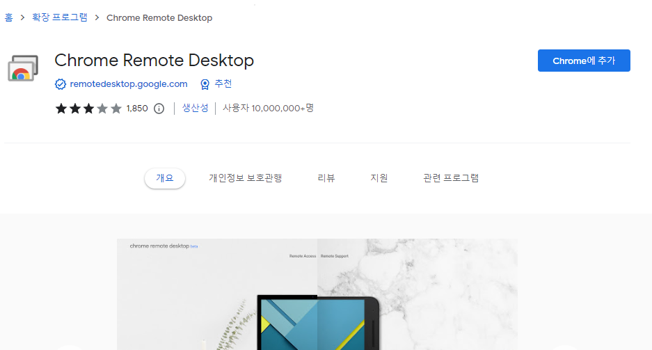이름처럼 '크롬 원격 데스크톱' 이므로 크롬 확장팩을 설치해 진행한다.