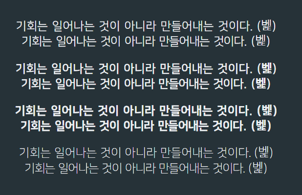 웹폰트에서는 제공되는 지정된 굵기를 사용해야 폰트가 자연스럽게 굵기가 표현된다.